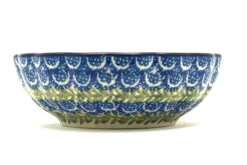Polish Pottery Bowl - Shallow Scalloped - Small - Blue Bells